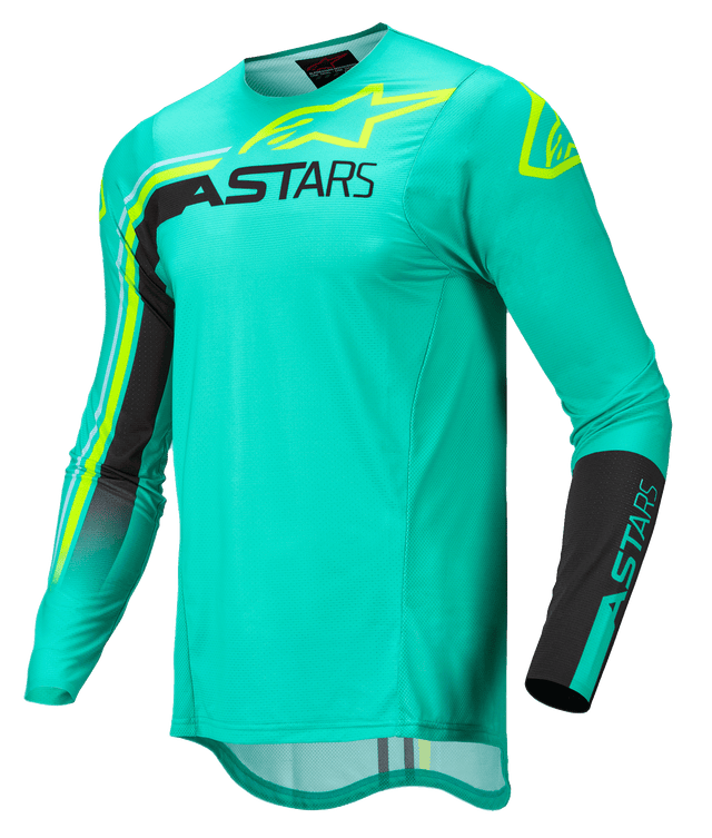 Supertech is Alpinestars innovative Motocross apparel line, designed for superior dirt riding performance. With an engineered design for an athletic fit, a chassis consisting entirely of advanced stretch mesh and an ultra-lightweight construction, the Supertech Jersey is Alpinestars lightest ever MX jersey. Featuring a host of race-proven technologies, the Supertech Jersey has innovative ergonomic shoulder and arm construction for superior freedom of movement and an extended back panel to maintain a flawless riding fit.
