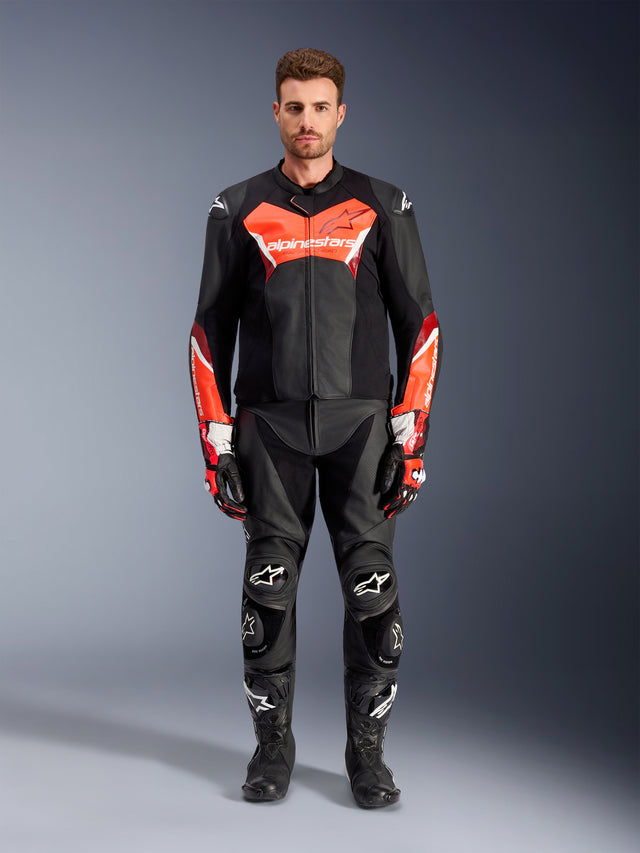 • Constructed from highly durable and technical premium leather, the jacket’s multi-panel construction provides strength, comfort, and superior abrasion resistance.