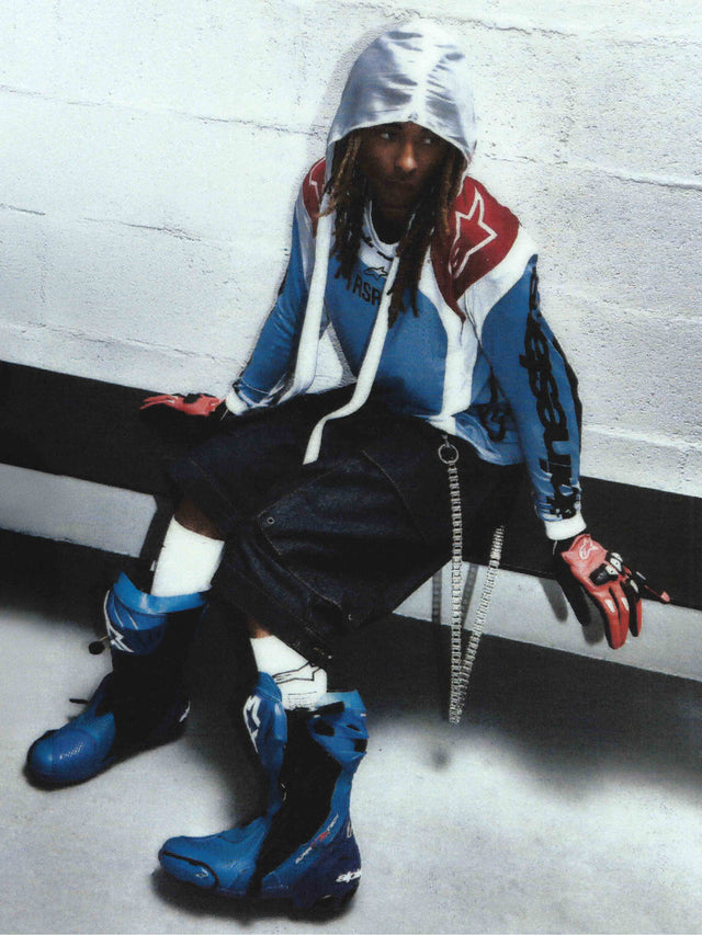 The Techstar is another RSRV piece that started life as a deadstock MX jersey from the Alpinestars technical catalog. We reworked it with a ribbed collar and ribbed cuffs for casual comfort. We cropped the length to eliminate the elongated rear panel and give it a boxier fit. We also added the signature RSRV topstitch in a slash pattern across the left chest and an overlock hem at the waist for added detail. The Techstar Reworked Jersey is available in two colorways.