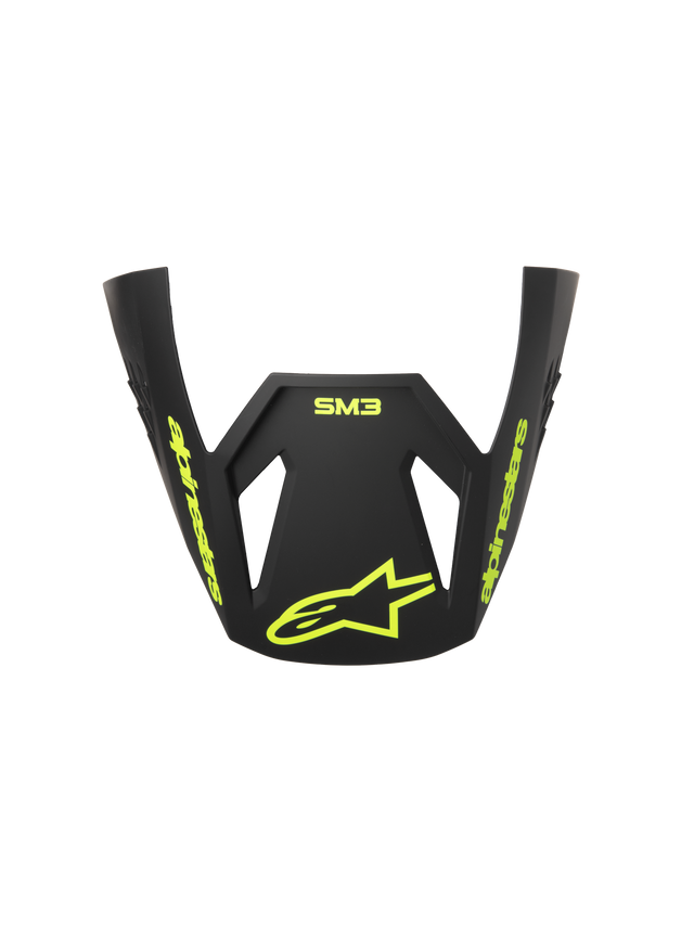 Alpinestars S-M3 Radium ECE06 Visor, Motocross Helmet Replacement Peak, Gray Black and Yellow Fluo Matte, featuring yellow fluo Alpinestars branding and star logo, matte finish, aerodynamic design for off-road racing