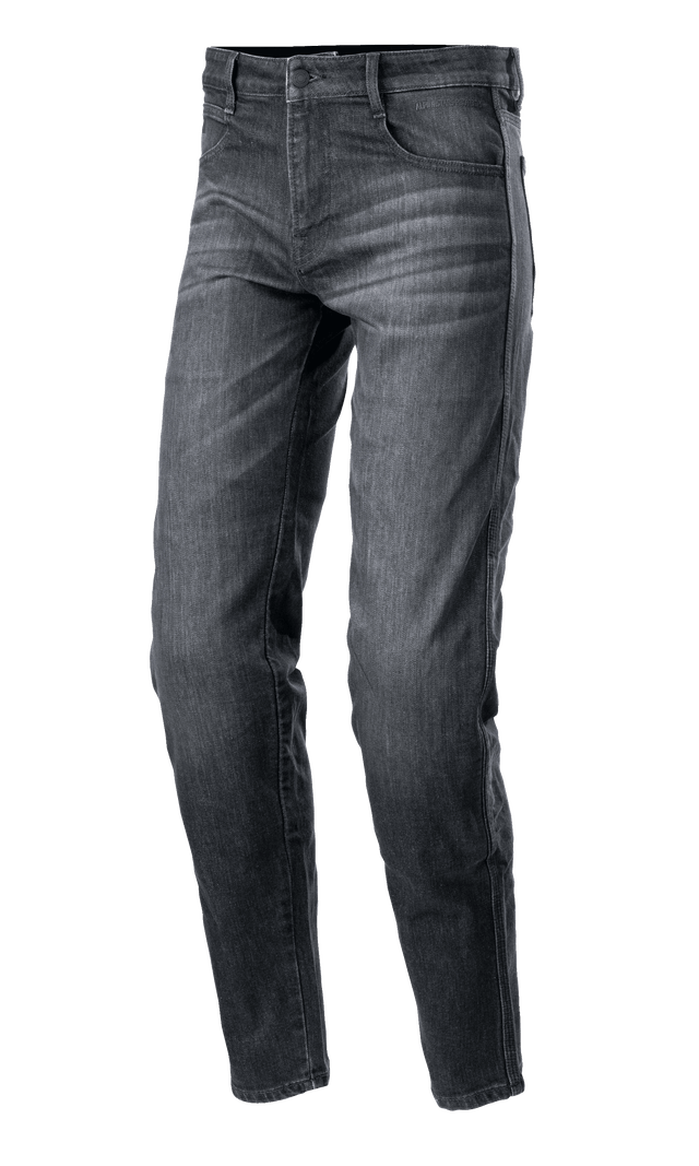Alpinestars Sektor Regular Fit Denim Pants, Dark Gray Motorcycle Jeans, Casual Slim Fit Design, Five-Pocket Style with Button and Zip Closure, Slightly Faded Texture with Subtle Wear