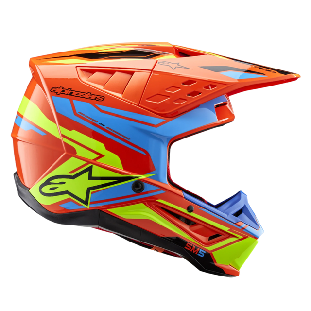 The SM5 helmet has been designed to provide MX riders with a helmet that is safe and purposefully designed to deliver optimal protection and comfort. The lightweight SM5 helmet features a thermo-injected shell incorporating a special polymer blend enhanced by varying degrees of thickness that is engineered to deliver the optimal combination of impact protection and light weight, while the five density EPS liner ensures the correct density in the correct area for enhanced impact absorption.